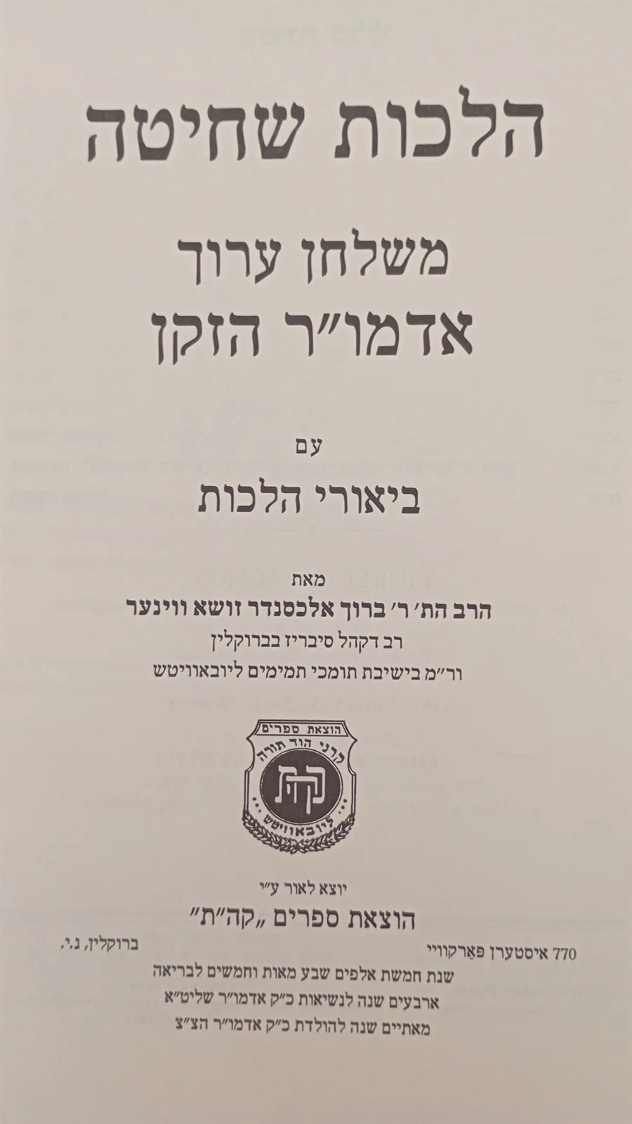 הלכות שחיטה משלחן ערוך אדמו"ר הזקן