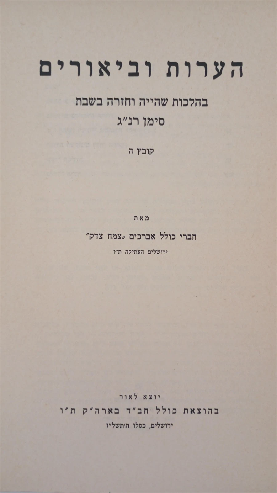 הערות וביאורים בהלכות שבת