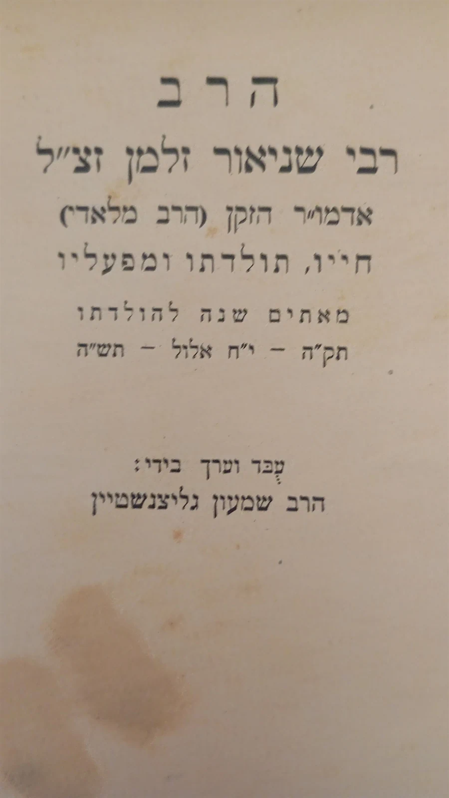 רבי שניאור זלמן זצ"ל