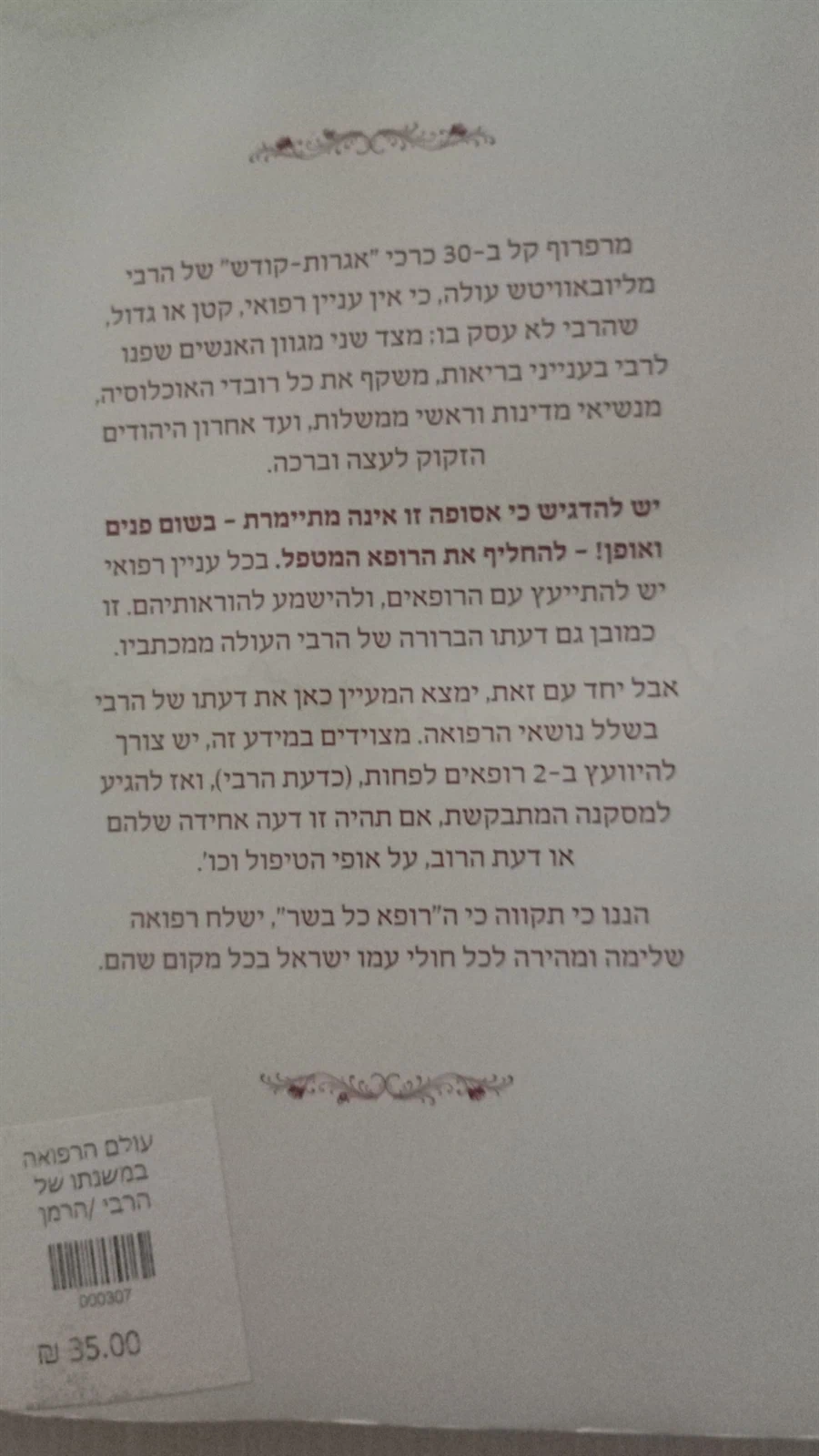 עולם הרפואה במשנתו של הרבי מליובאוויטש
