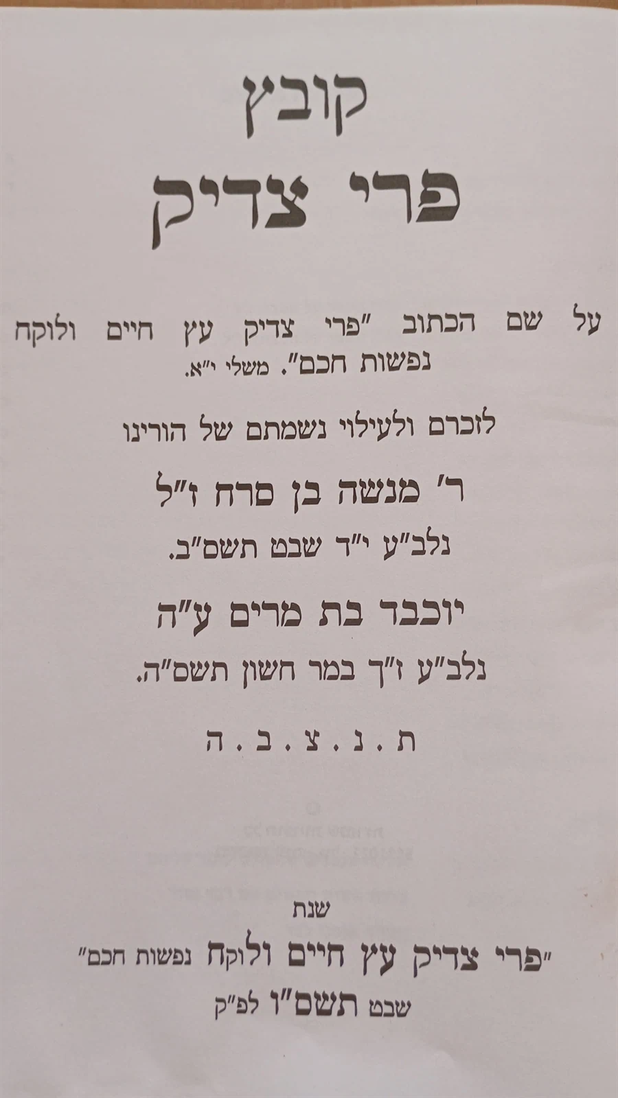 קובץ פרי צדיקקובץ פרי צדיק 2