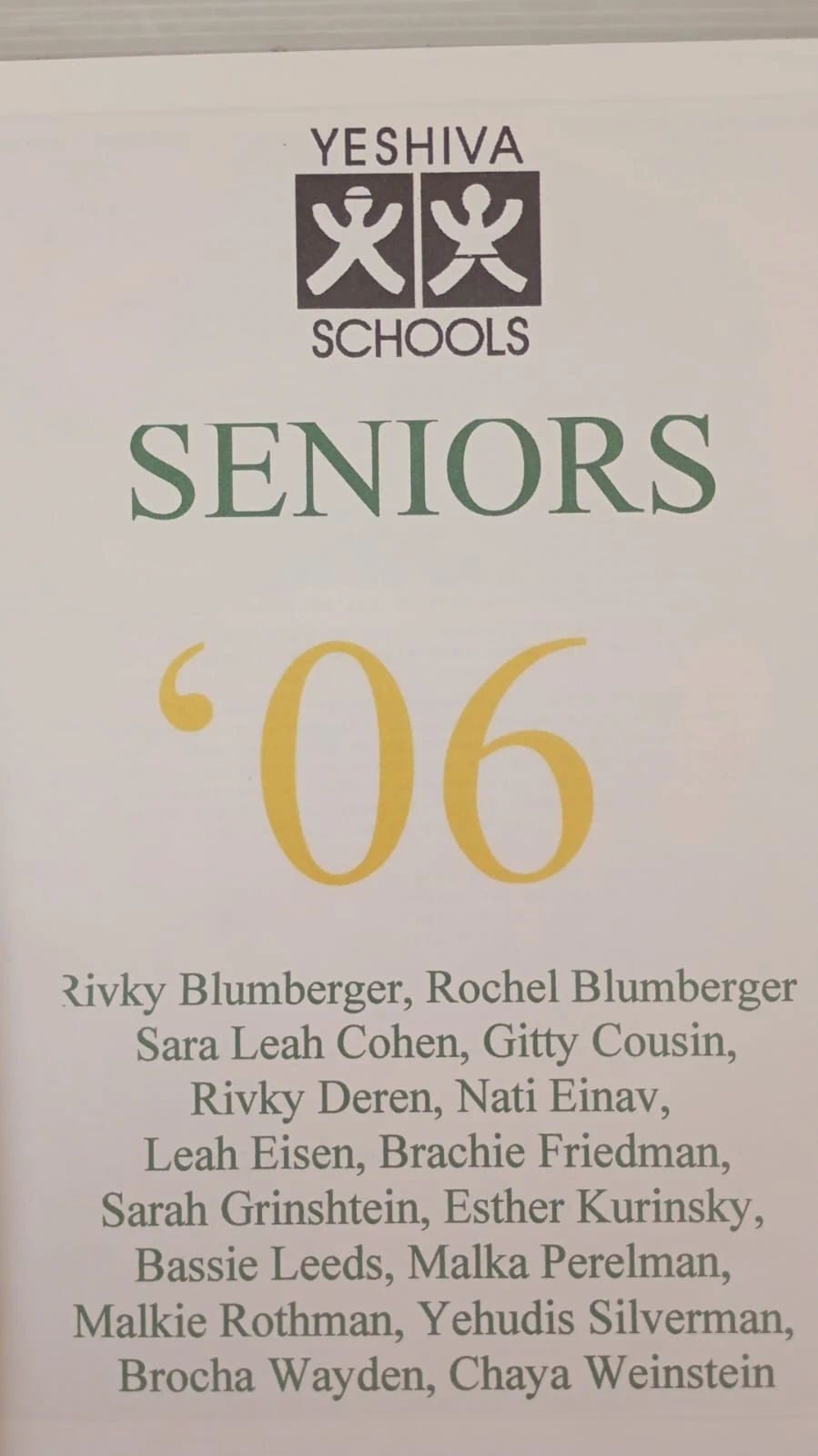 רבקי בלמברגר, רושל בלומברגר שרה לאה כהן, גיטי קוזין, רבקי דרן, נתי עינב, לאה אייזן, ברכי פרידמן, שרה גרינשטיין, אסתר קורינסקי, באסי לידס, מלכה פרלמן, מלכי רוטמן, יהודי סילברמן, ברוכה ווידן, חיה וינשטיין