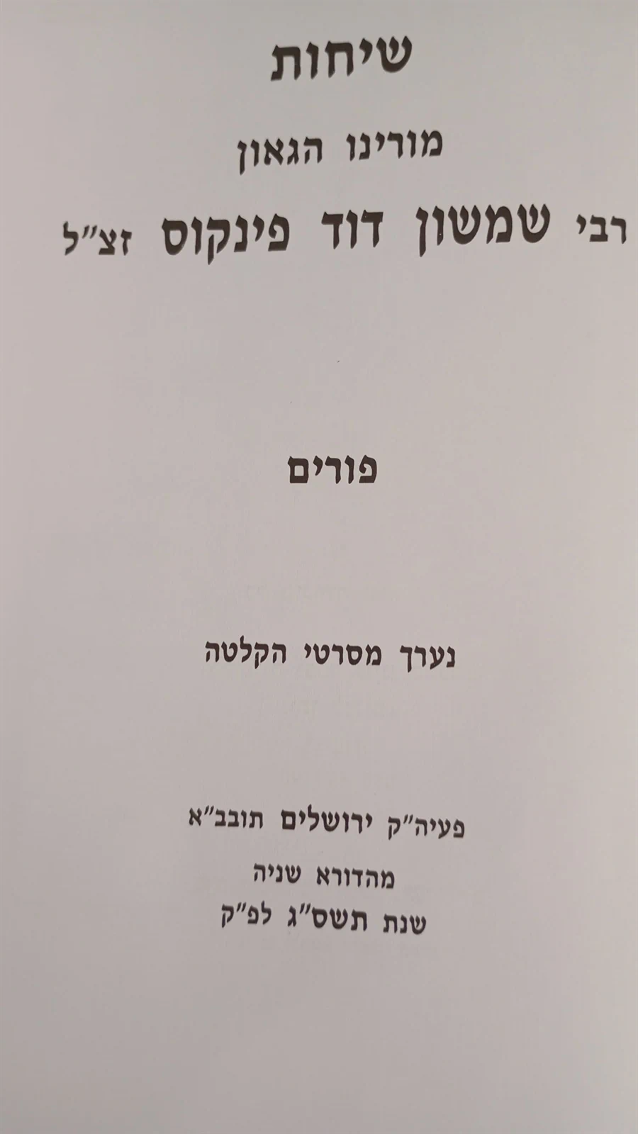 שיחות מורנו הגאון רבי שמעון דוד פינקוס זצ"ל
