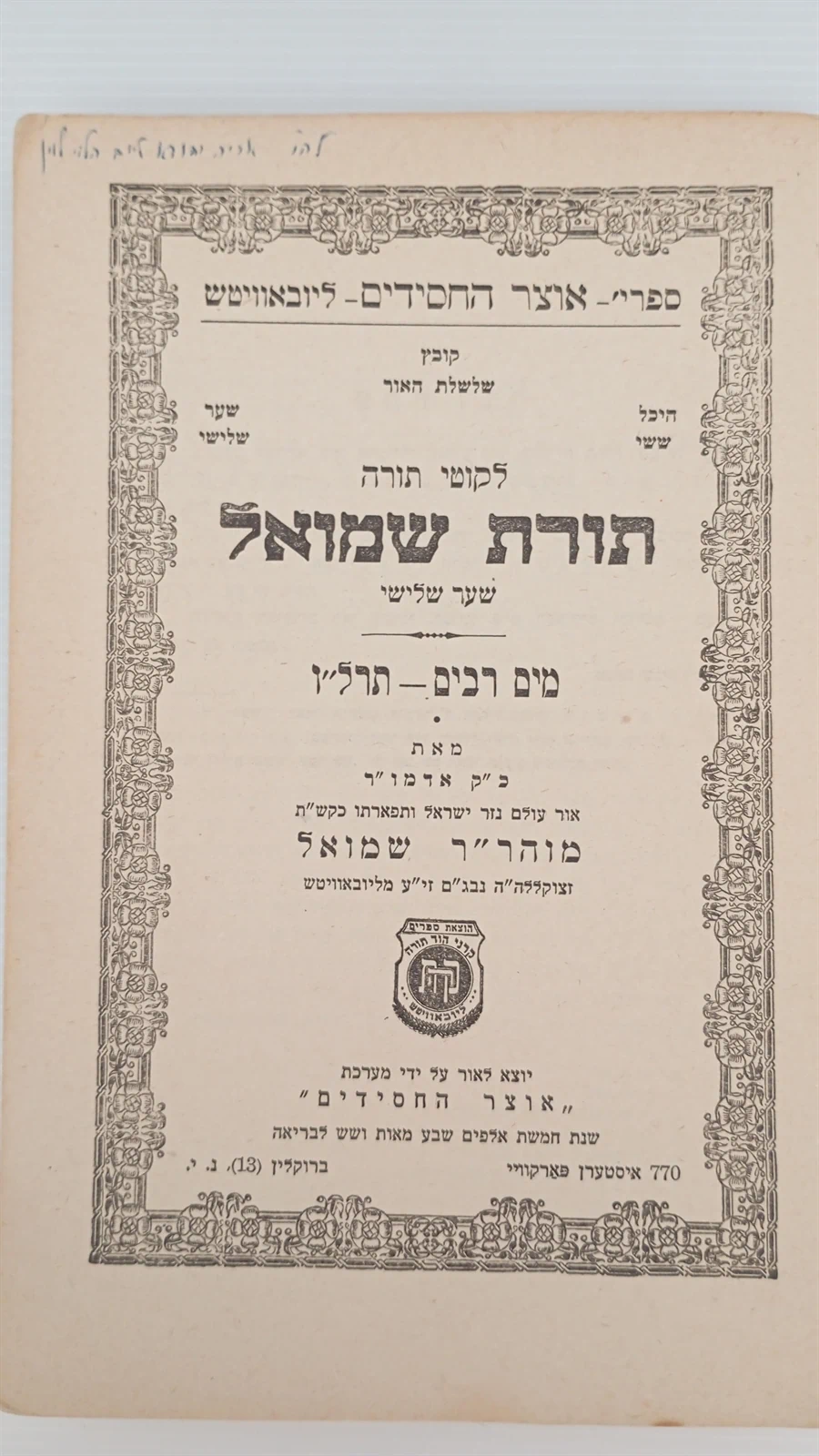 תורת שמואל מים רבים - תרל"ו